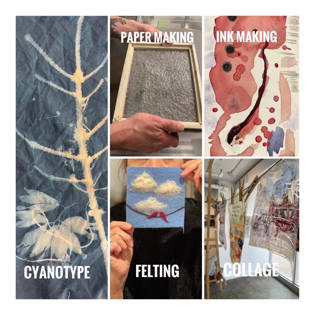 culinary arts – graphic narrative, sequential art and manga – drawing fundamentals – foraging – gardening – botanical studies – ink making – cyanotype printing – collage and assemblage – creative writing – felting – film camera experiments
